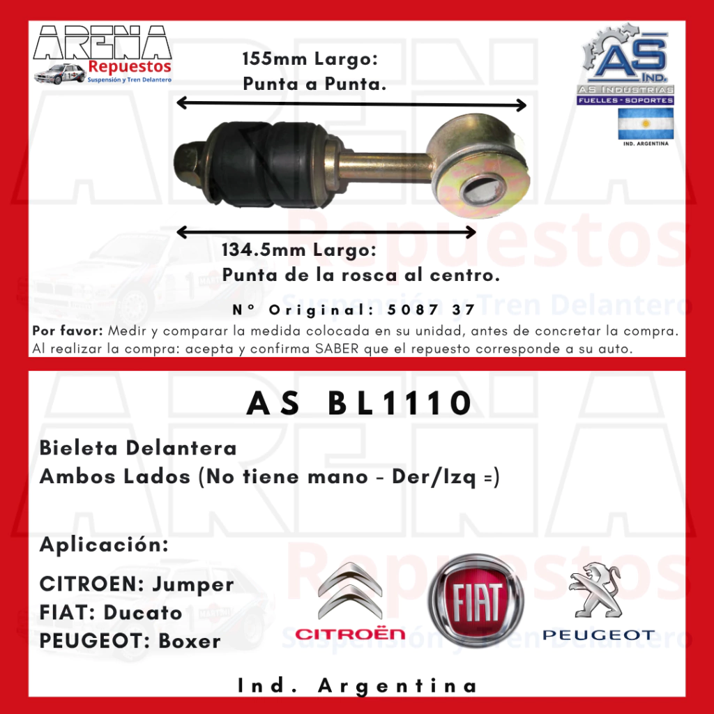 Bieletas Delanteras (Kit x2 Unidades) - AS BL1110 (Ind. Argentina)