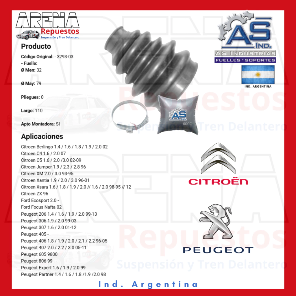 Fuelle Citroen Berlingo Semieje Lado Rueda KIT - AS FT9081A
