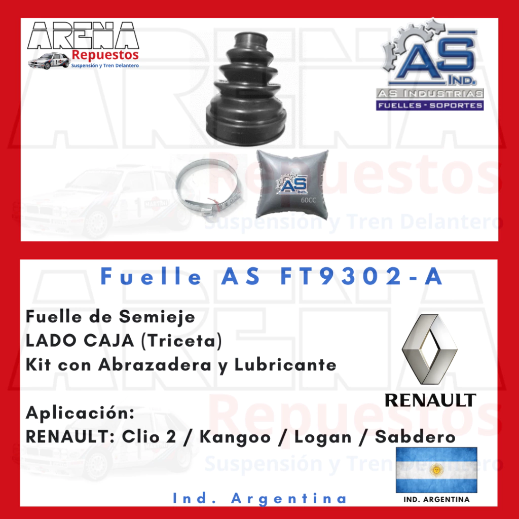 FUELLE SEMIEJE LADO CAJA (Triceta) - AS FT9302A (Kit con Abrazadera y Lubricante)