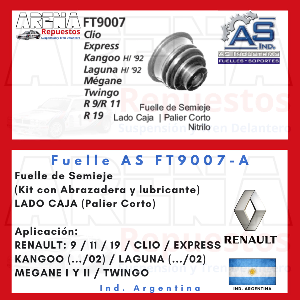 Fuelle Renault Twingo Semieje Lado Caja (Palier Corto) KIT - AS FT9007A