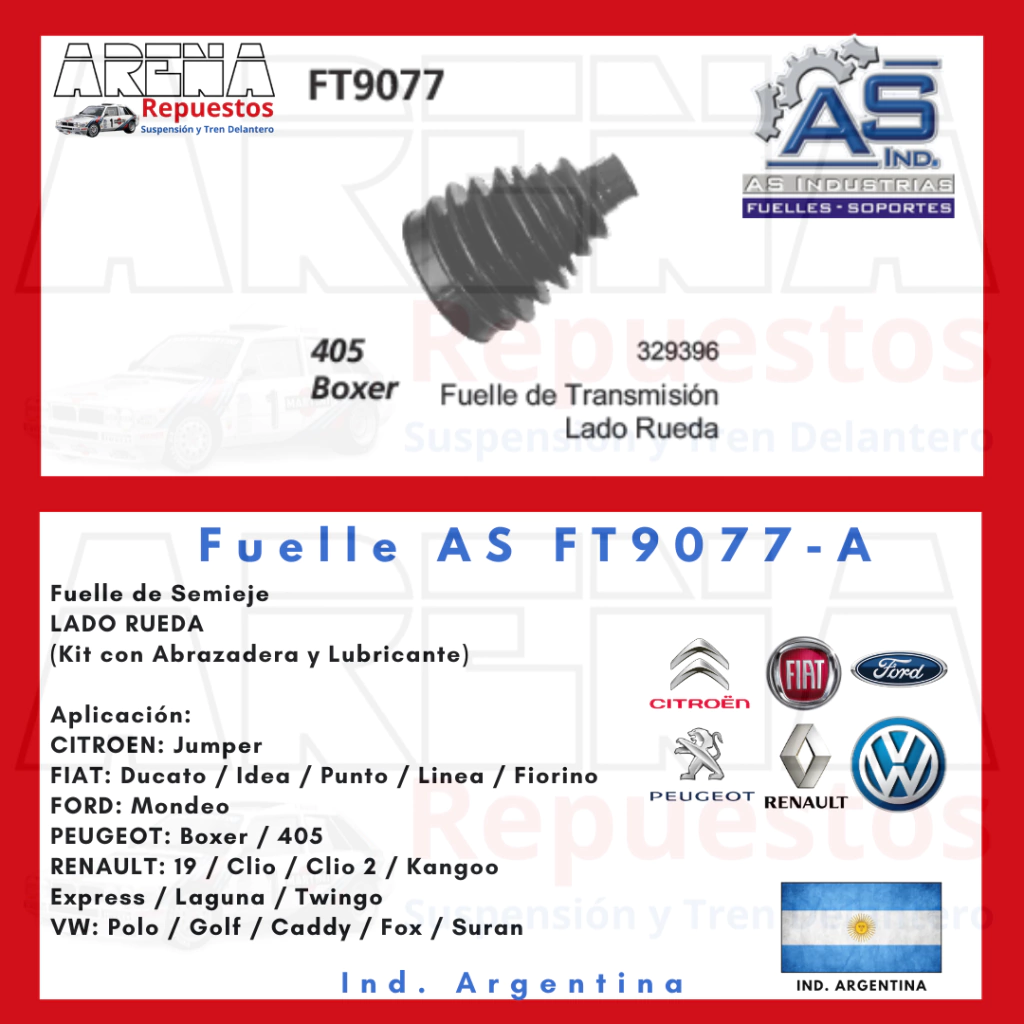 FUELLE SEMIEJE LADO RUEDA - AS FT9077A (Kit con Abrazadera y Lubricante)