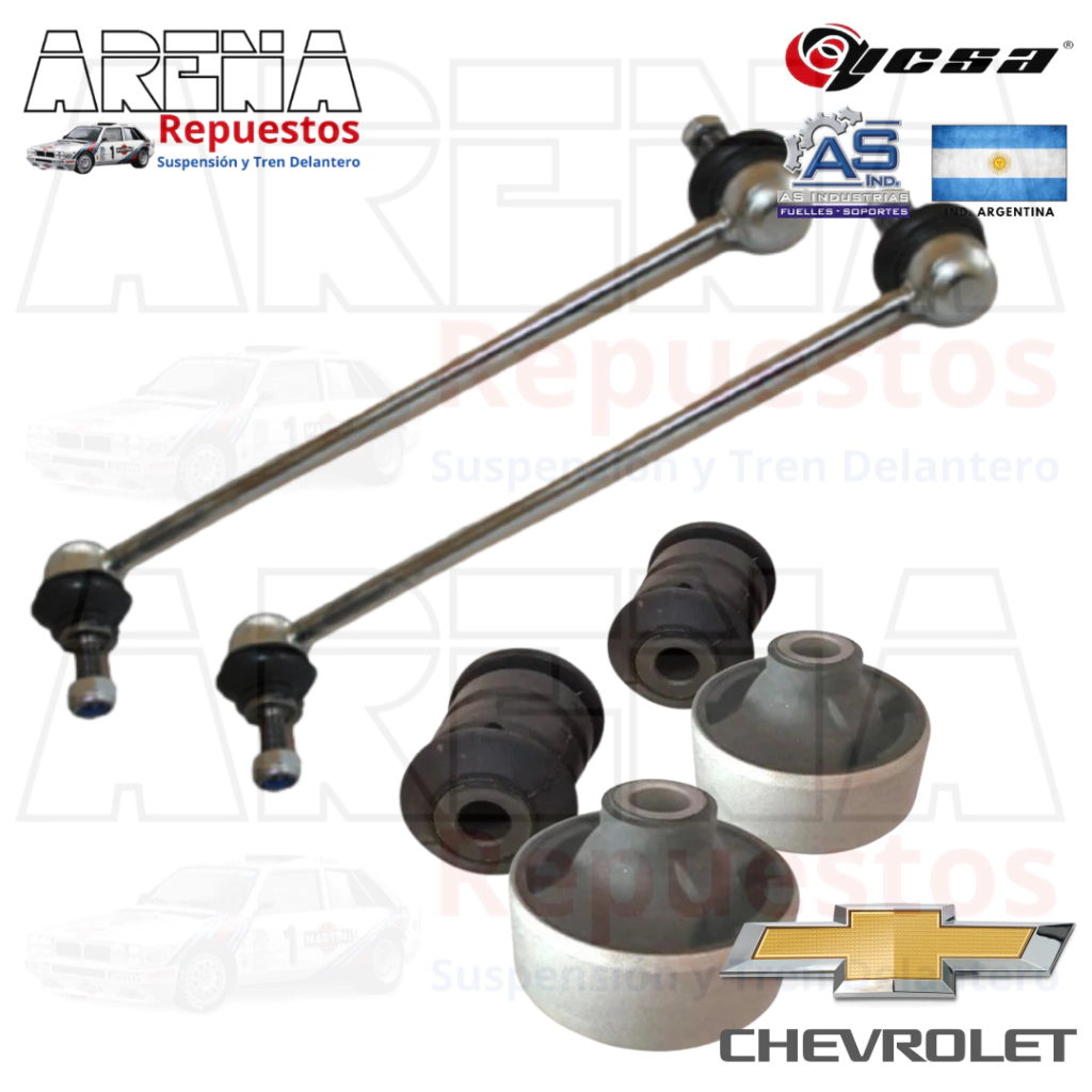 KIT BUJES de PARRILLAS + BIELETAS de TREN DELANTERO (6 Piezas) - ICSA + AS (Ind. Argentina)