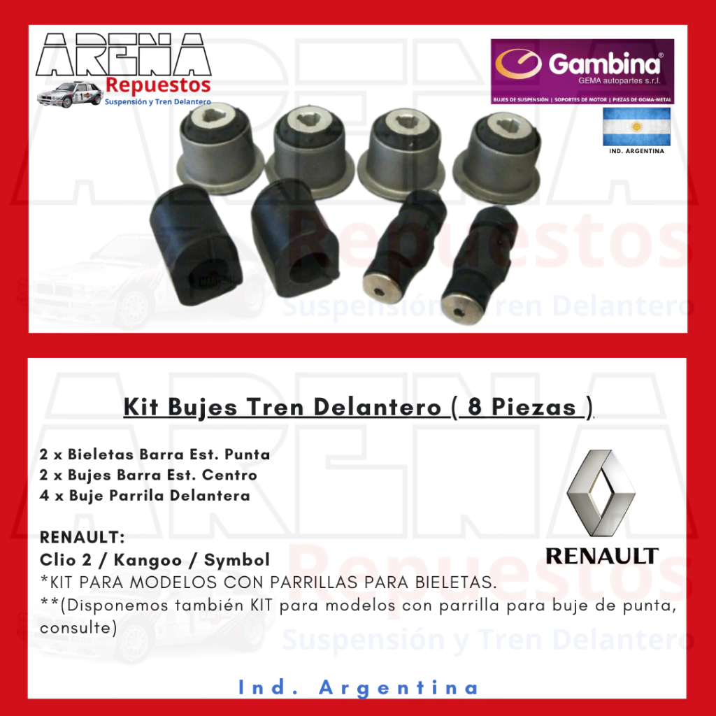 * KIT Renault Kangoo Bujes + Bieletas (Tren Delantero - 8 Piezas) - Gambina